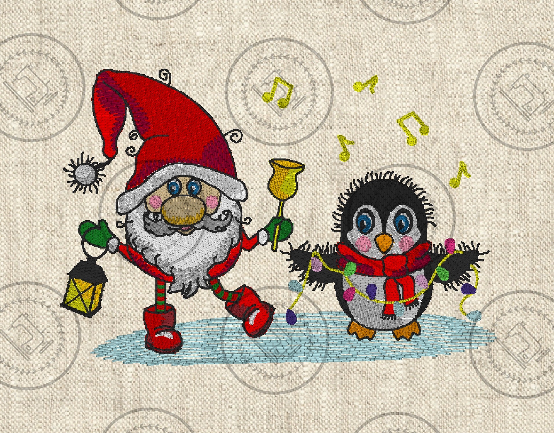 DANCING SANTA AND CHRISTMAS PENGUIN Embroidery Design - DSCP22 8 x 5