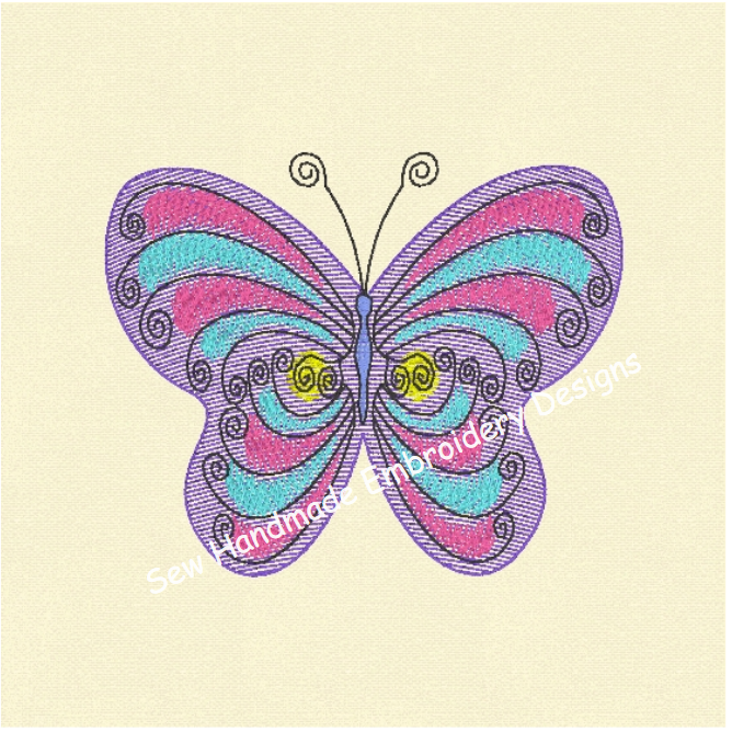 LIGHT FILL MULTI COLOURED BUTTERFLY Machine Embroidery Design - LFB023 4 x 4