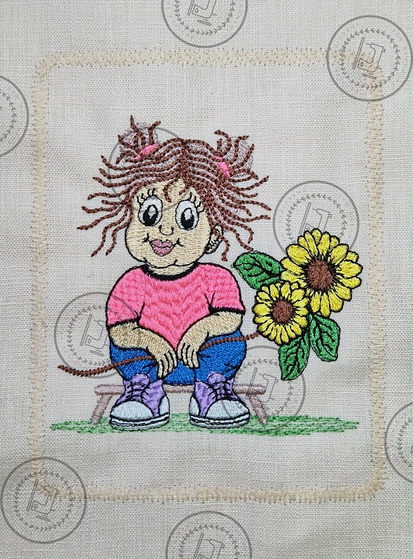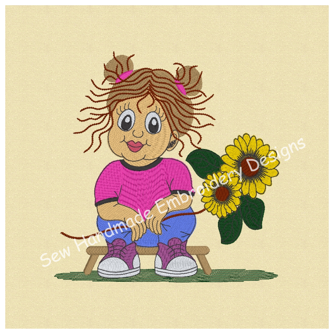 PRETTY SUNFLOWER GIRL Machine Embroidery Design
