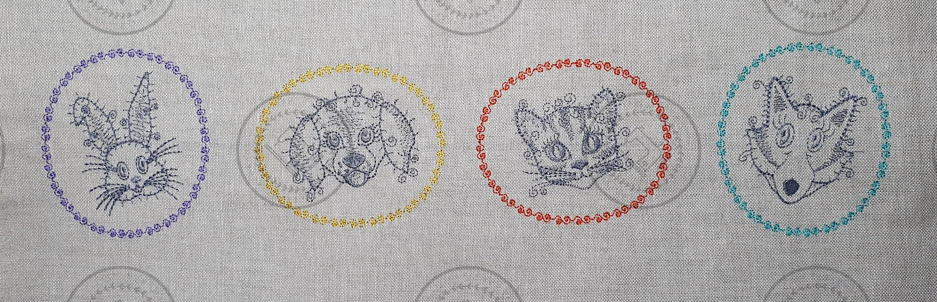 SKETCH CAMEO Embroidery Design SET 3 includes RABBIT, DOG, CAT, FOX - SCS3 ( Each design 3.5 x 4 )